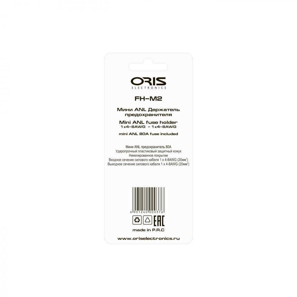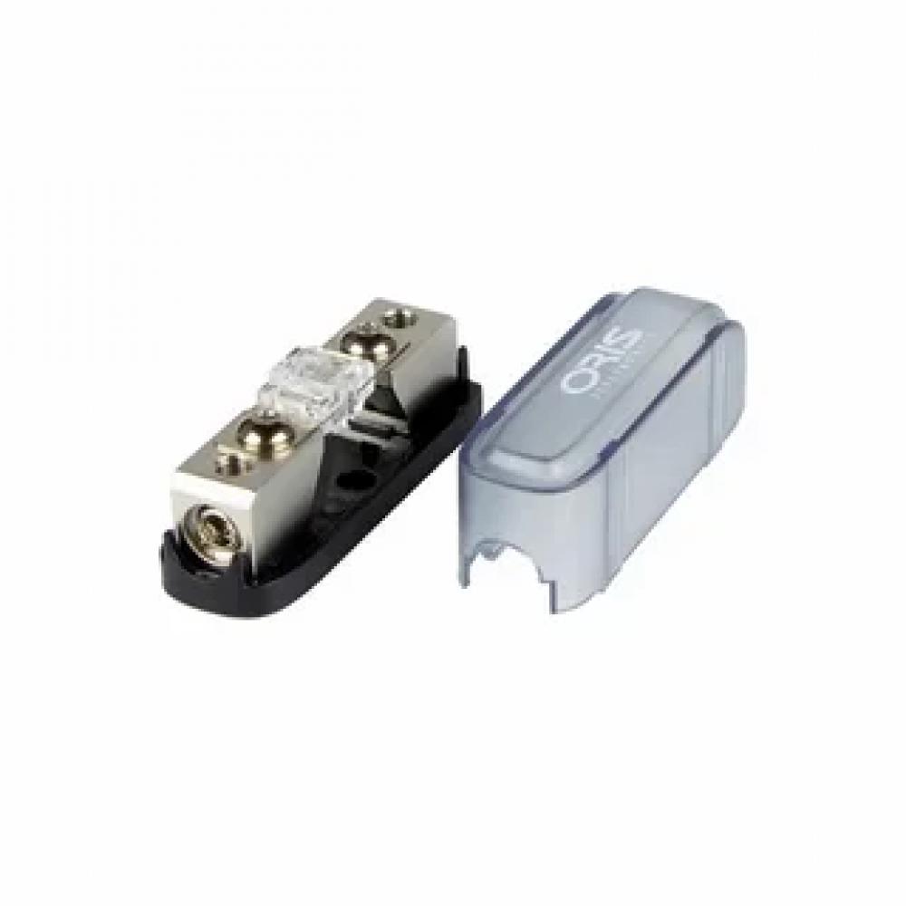 ORIS OLICTRONIS FH‑M1 — это держатель предохранителя типа Mini ANL, рассчитанный на кабели 4–8 Ga. В комплекте идёт предохранитель номиналом 100 А и переходные втулки для кабеля 8 Ga. Корпус выполнен из термостойкого пластика, проводники — из никелированного сплава
