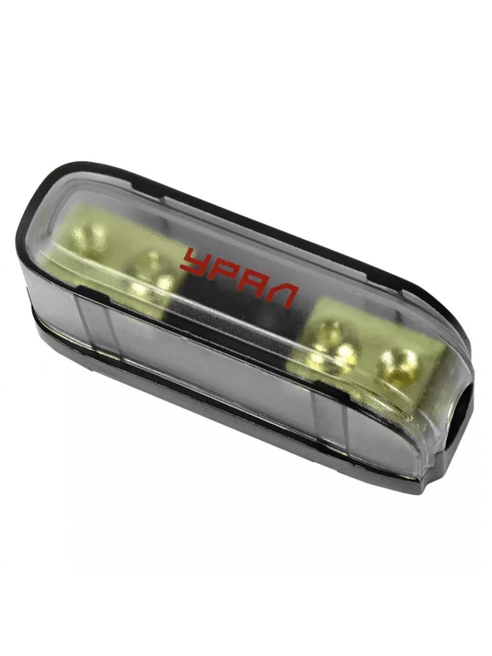 УРАЛ ДП-УТ06 — надёжный держатель предохранителя типа ANL, предназначенный для установки в силовые цепи автомобильных аудиосистем с высоким потреблением тока. Модель оснащена прозрачным защитным кожухом, который предотвращает попадание влаги и пыли, а также обеспечивает визуальный контроль состояния предохранителя. Совместим с кабелями большого сечения (до 0 GA), подходит для подключения усилителей, распределителей питания и других компонентов, требующих стабильной защиты. Серия Decibel гарантирует промышленную надёжность и соответствие стандартам SPL-инсталляций.